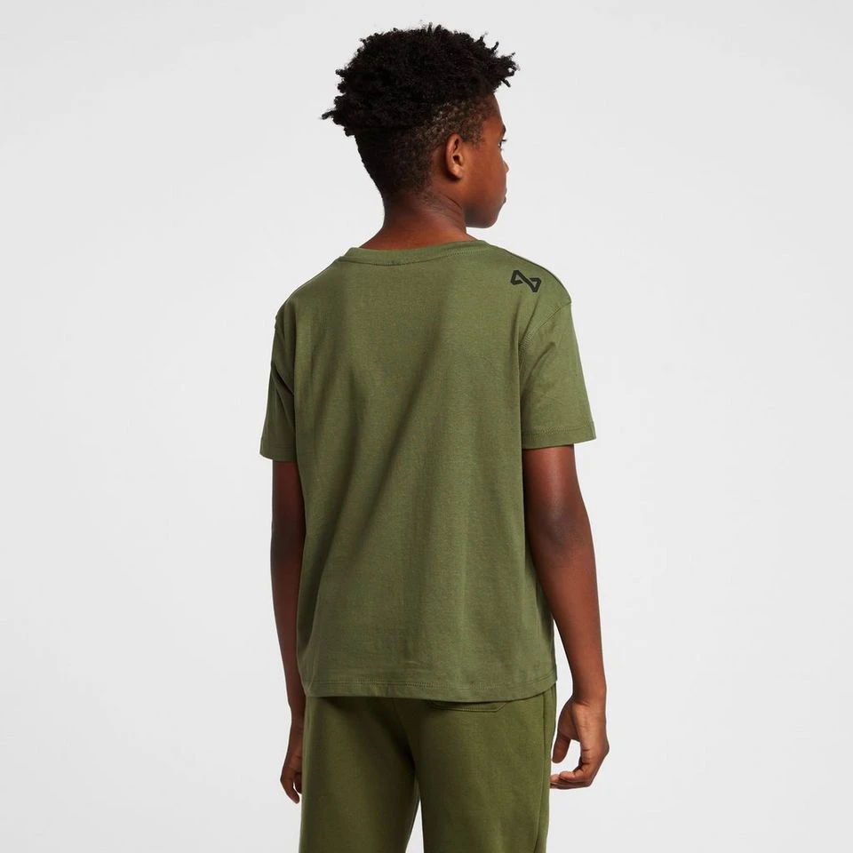 The Kids’ Core T-Shirt has a crew neck short sleeves, with logo branding print across the chest.